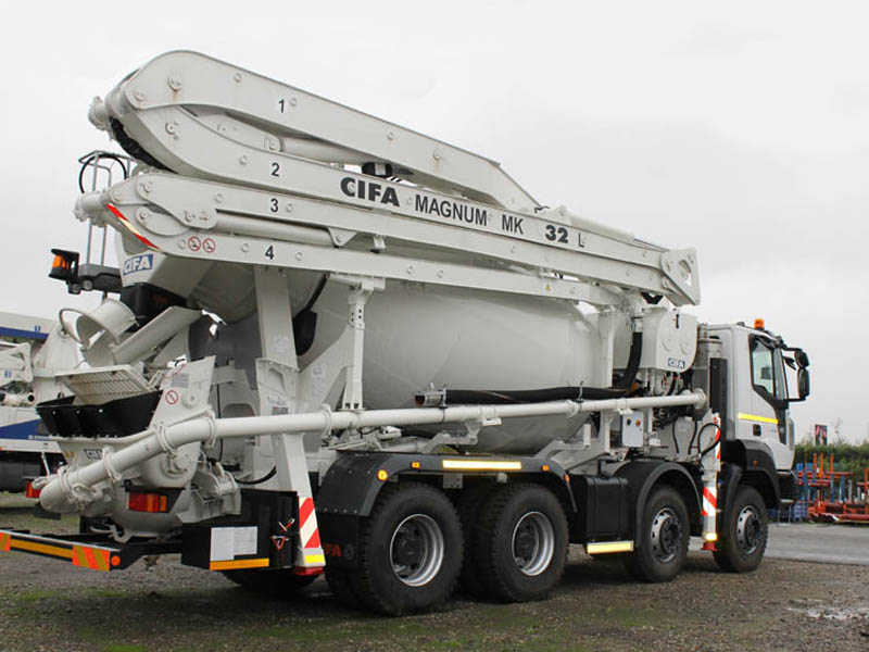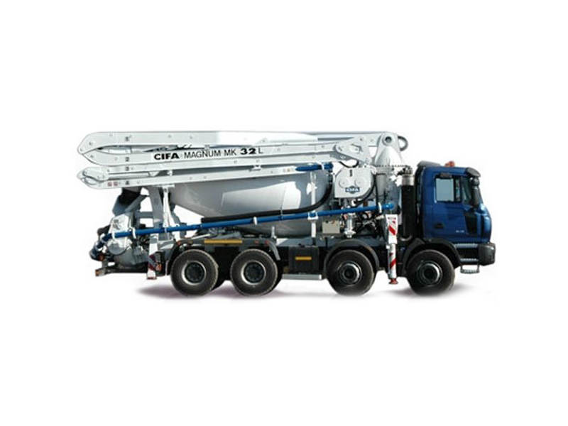 Автобетононасос CIFA MK 32L Z 115 обладает компактной и удобной конструкцией. Данная машина имеет смеситель Magnum. Она сконструирована на четырехосном шасси. Передние выносные опоры с Х - образным выдвижным механизмом созданы для быстрой установки и легкого раскрытия стрелы в стесненных условиях строительной площадки. Независимая рама защищена от деформации кручения. Четырех или пятисекционная раздаточная стрела имеет диаметр 125 мм. Пропорциональное раскрытие стрелы позволяет оператору управлять движениями секций. Данная модель отличается тихой работой насоса и высокой производительностью..