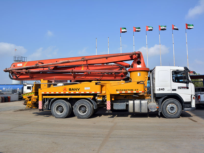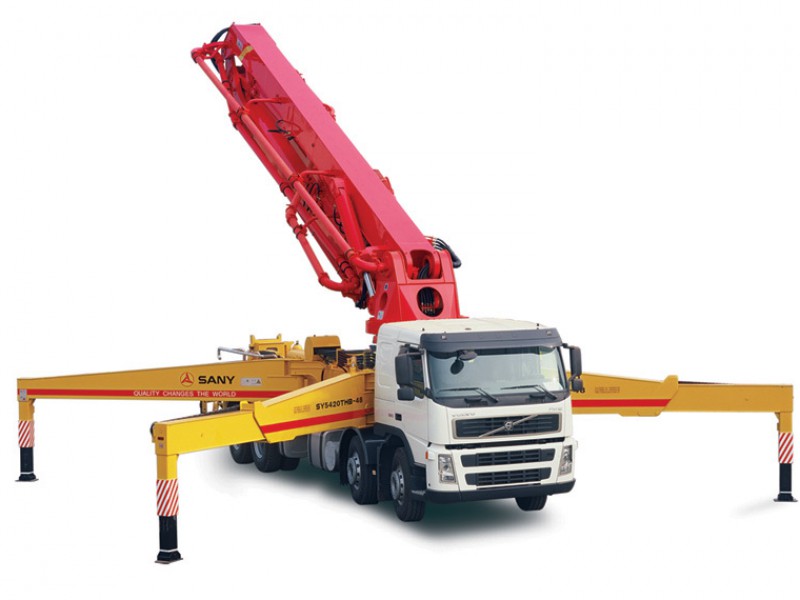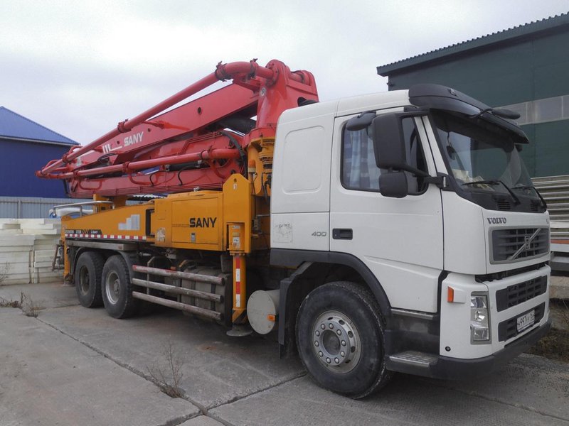 Автобетононасос Sany SY5296THB37 установлен на шасси грузового автомобиля. Его основное назначение – перемещение приготовленного бетона из смесителя к месту заливки.