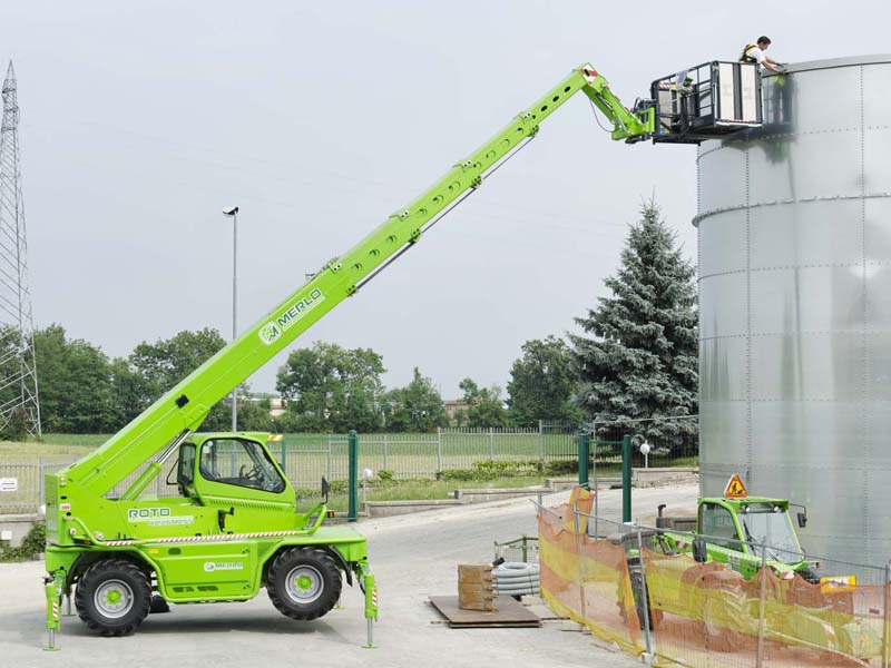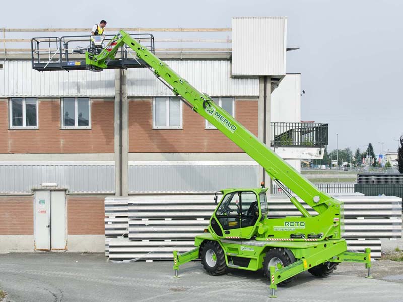 Главная особенность серии Roto, это возможность работать на 360°, благодаря вращающейся башне, которая обеспечивает больший радиус действия по сравнению с неподвижным телескопическим погрузчиком. Серия Roto от Merlo Group стала синонимом категории телескопических погрузчиков с поворотной башней по всему миру. Модель ROTO R40.30MCSS имеет двухступенчатую гидроуправляемую трансмиссию с реверсированием на ходу. Рулевое управление осуществляется передними колесами, колея в колею, есть крабовый ход. Имеется постоянно включенный полный привод. Сухая дисковая независимая на каждое колесо тормозная система. Кабина соответствует стандарту FOPS 2-го уроня. Активная система безопасности - динамический контроль опасности опрокидывания со световой и звуковой сигнализацией и блокировкой опасных движений.