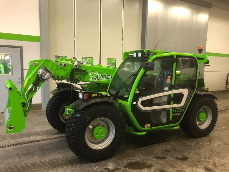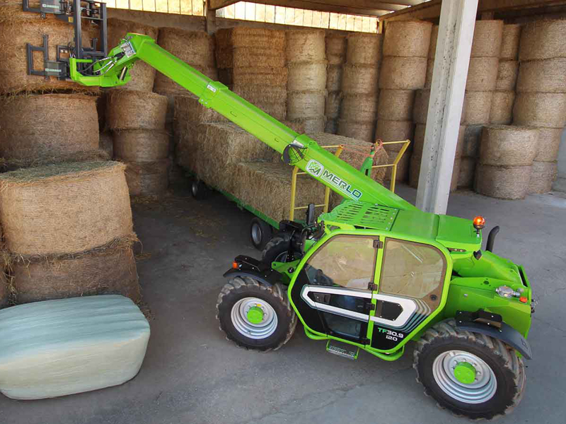 Merlo первым создал телескопический погрузчик, предназначенный для сельского хозяйства, оснащенный сертификацией для буксировки прицепов на дороге со скоростью 40 км/ч. Модели Turbofarmer - идеальное решение для удовлетворения потребностей в сельскохозяйственном мире. Модель TURBOFARMER TF30.9 имеет двухступенчатую гидроуправляемую трансмиссию с реверсированием на ходу. Рулевое управление осуществляется передними колесами, колея в колею, есть крабовый ход. Имеется постоянно включенный полный привод. Сухая дисковая независимая на каждое колесо тормозная система. Кабина соответствует стандарту FOPS 2-го уроня. Активная система безопасности - динамический контроль опасности опрокидывания со световой и звуковой сигнализацией и блокировкой опасных движений.